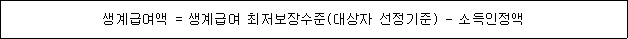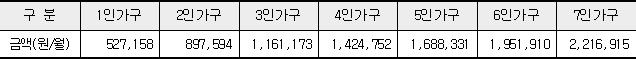 * 8인 이상 가구의 선정기준 : 1인 증가시마다 265,005원씩 증가(8인가구: 2,481,920원)