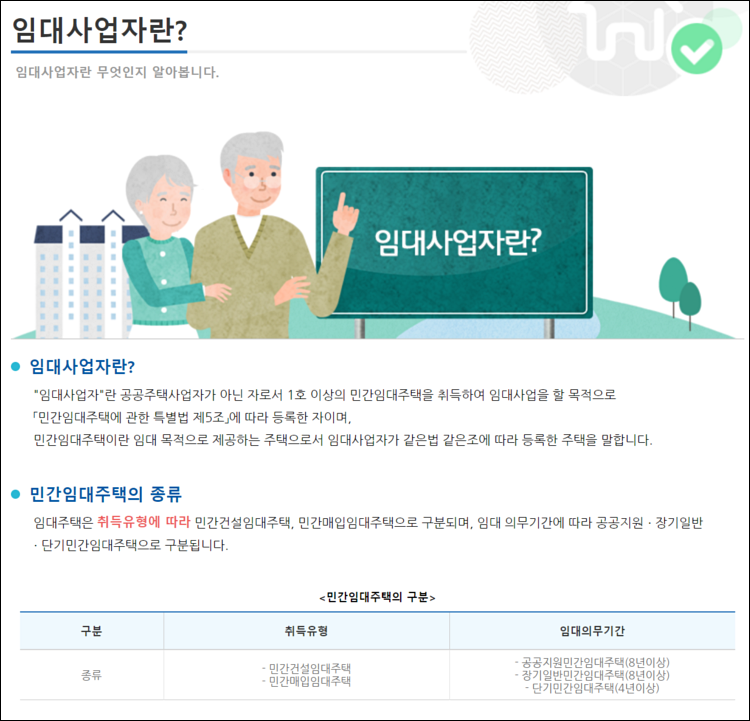 임대사업자란 공공주택사업자가 아닌 자로서 1호 이상의 민간임대주택을 취득하여 임대사업을 할 목적으로