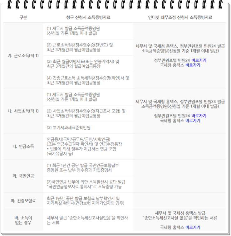 국민행복기금 신청 구비서류, 소득확인서류