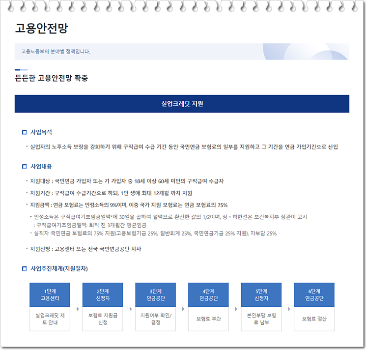 이 실업크레딧의 지원신청은 고용센터 또는 전국 국민연금공단 지사에가 가능합니다.
