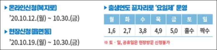온라인의 경우는 출생연도 끝자리로 요일제 운영이 실시됩니다.