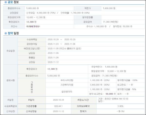 공모 청약일정은 3~4일 이며, 전체 공모 물량의 20퍼센트인 116만주가 배정된다고 하네요.