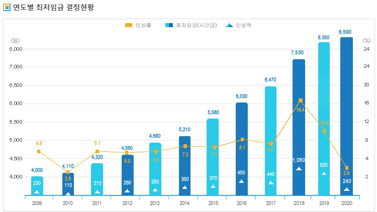 • 2020년 적용 시간급 최저임금 : 8,590원 (2019.8.5.고시)