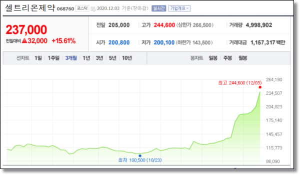 셀트리온 주가는 오늘 12월 3일 현재 351,000원입니다. 저는 현재 12%의 수익을 얻었습니다.