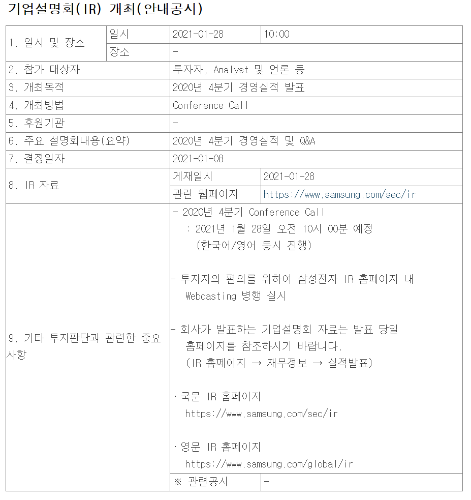 돌려주기로 하기로 했기때문. 지난해 2020년은 이 발표의 마지막해이고. 삼성전자는 연일 호조의 실적을 발표해왔다.