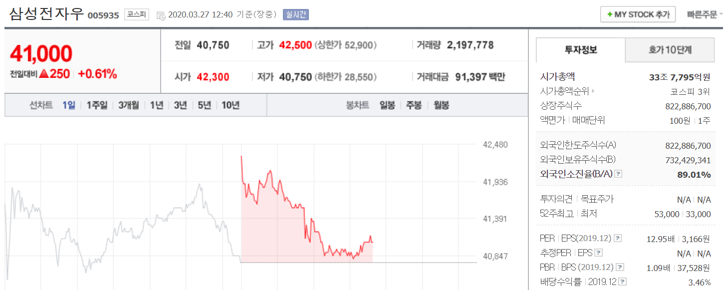 요즘 주식에 대한 관심이 뜨겁습니다. 코로나 여파로 주식시장이 요동치고 있는 가운데 주가지수가 하락 함에 따라 우량주에 대한 개인 투자자의 관심이 늘고 있는 상황입니다. 그중 삼성전자 주식에 대한 인기가..