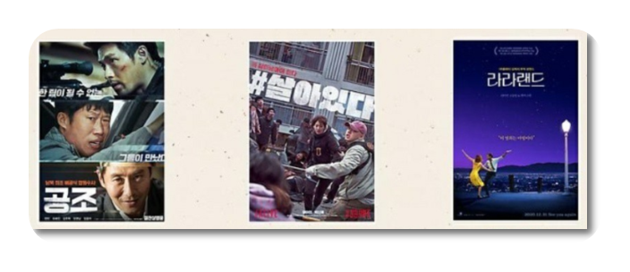 제가 감상한 것은 공조, 살아있다 , 1917, 내안의 그놈, 동네사람들인데요. 인상 깊었던 작품은 "1917"입니다 그 긴 런닝타임을 롱테이크 촬영기법(?)으로 끌고 나가는. 대단하다 싶었던 영화입니다.