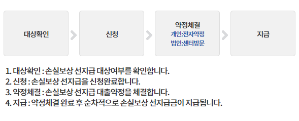- 지급: 약정체결완료후 순차적으로 손실보상 선지급금이 지급됩니다.